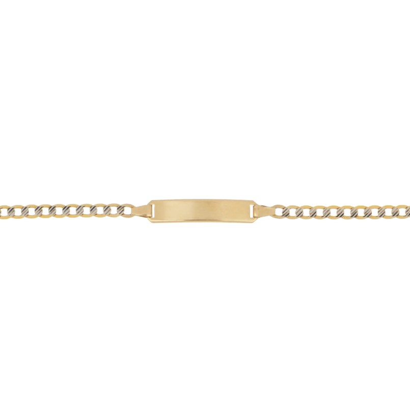 Pulseras clásica para bebés / niños para niñas elaborada en Oro 10k con cadena estilo cubano de tejido barbado, acabado diamantado con oro blanco | Tamaño aproximado: 14cm y placa de 2cm