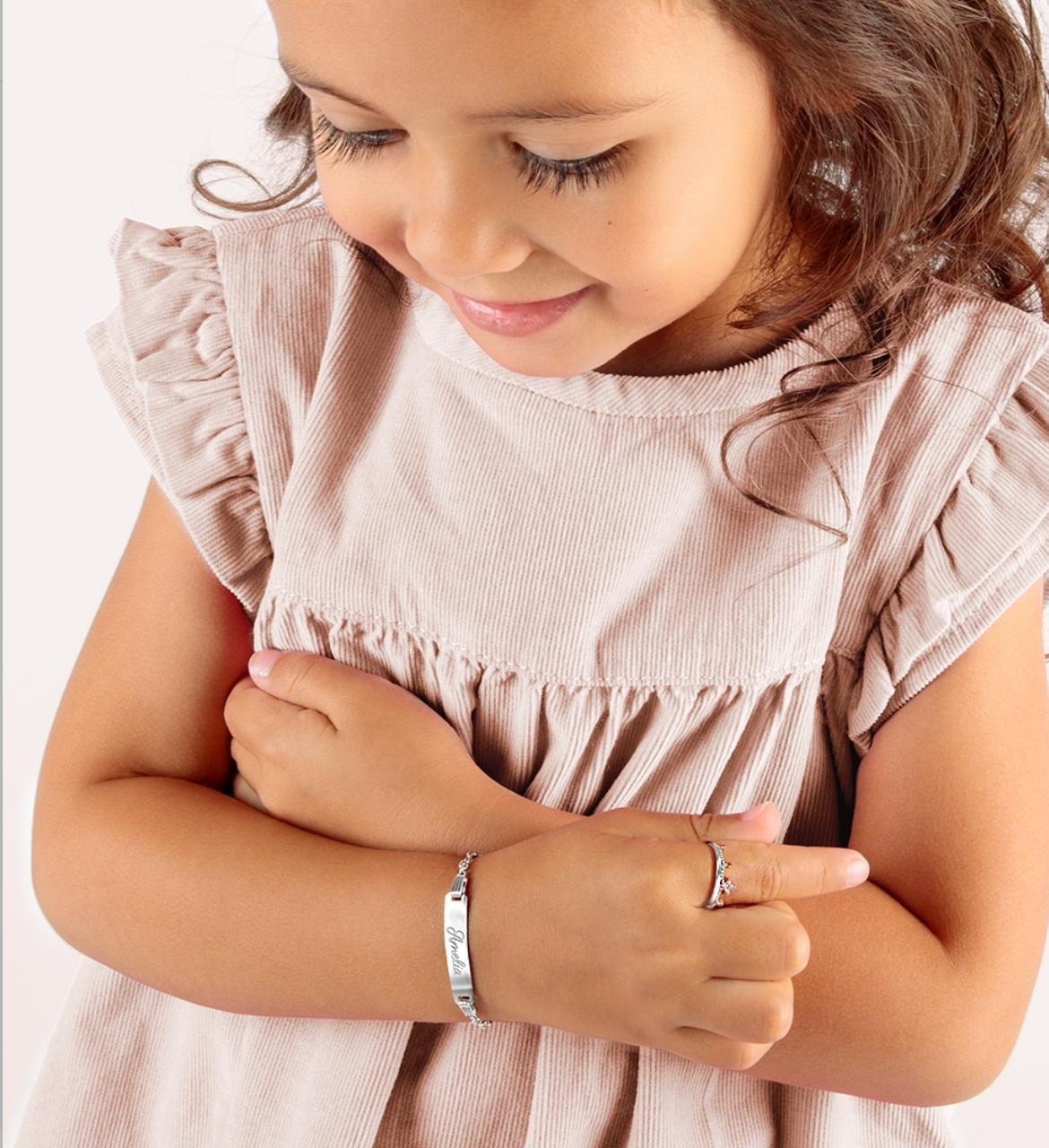 Pulseras clásica para bebés / niños para niñas elaborada en Plata 925. | Tamaño aproximado: 12cm y placa de 2cm